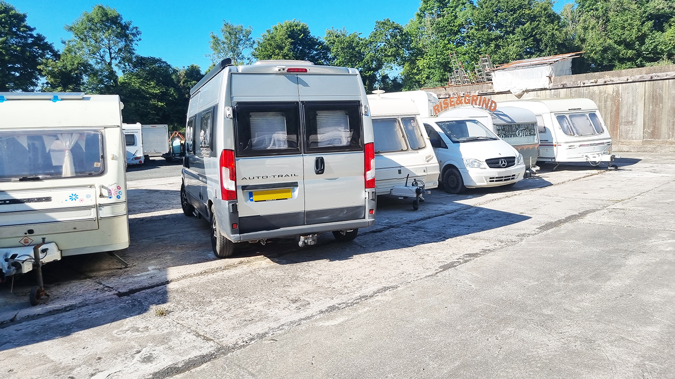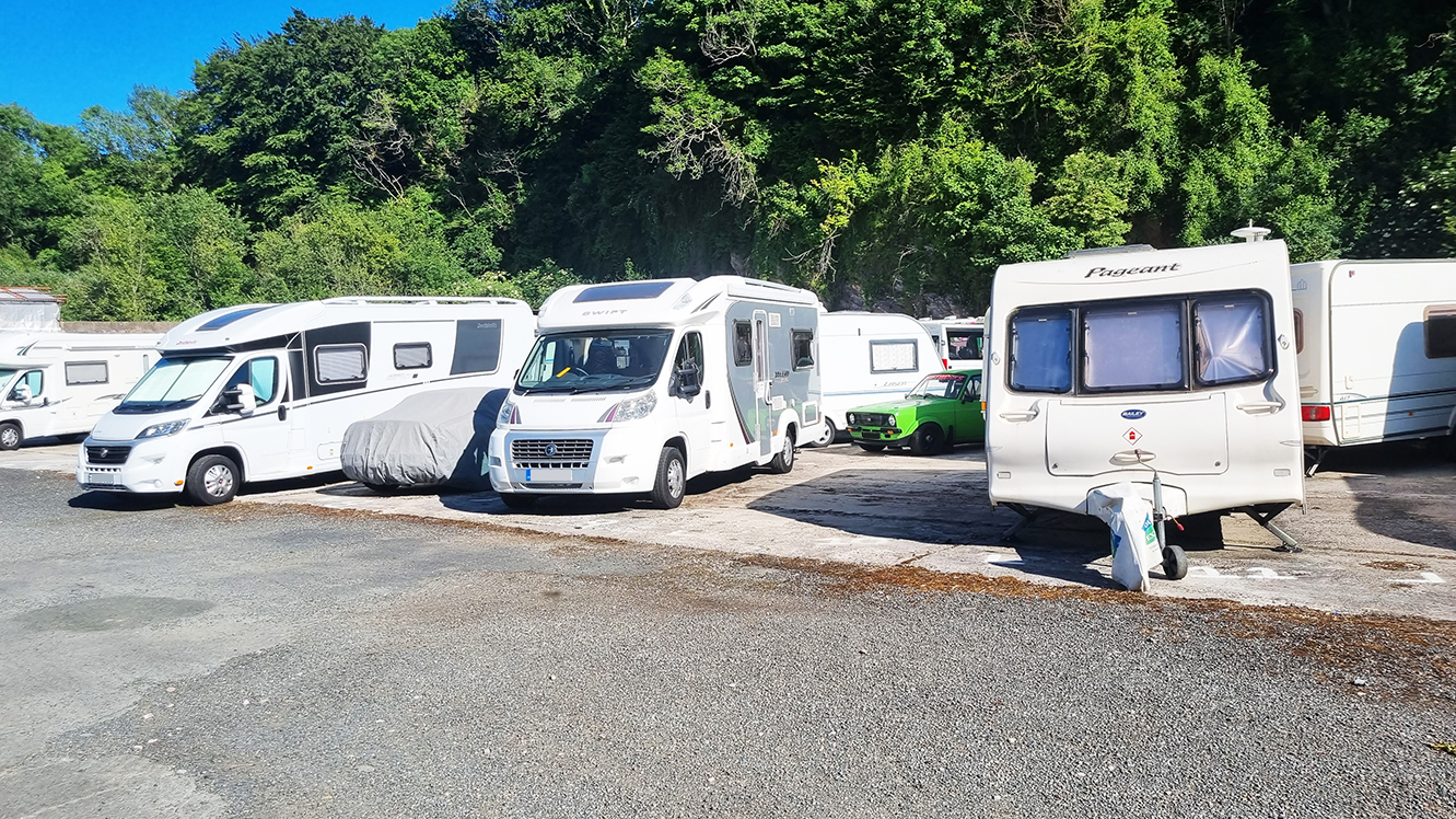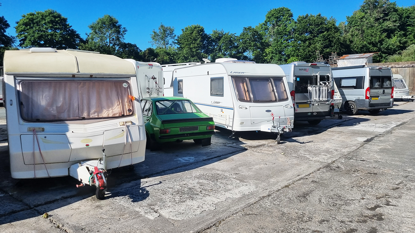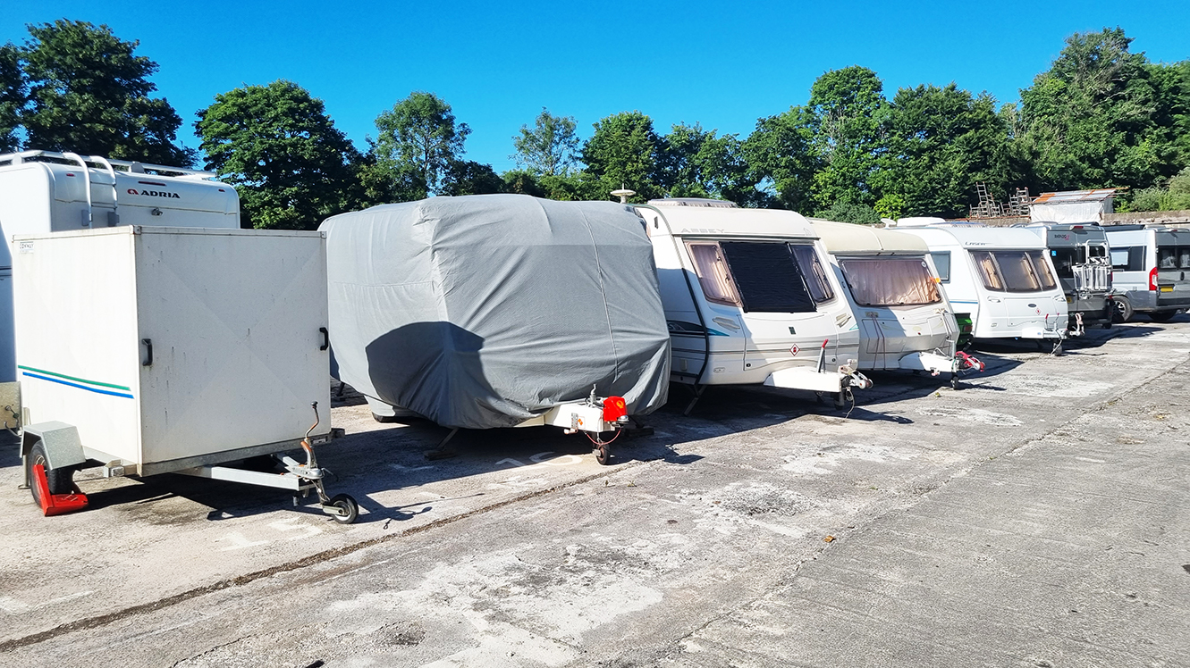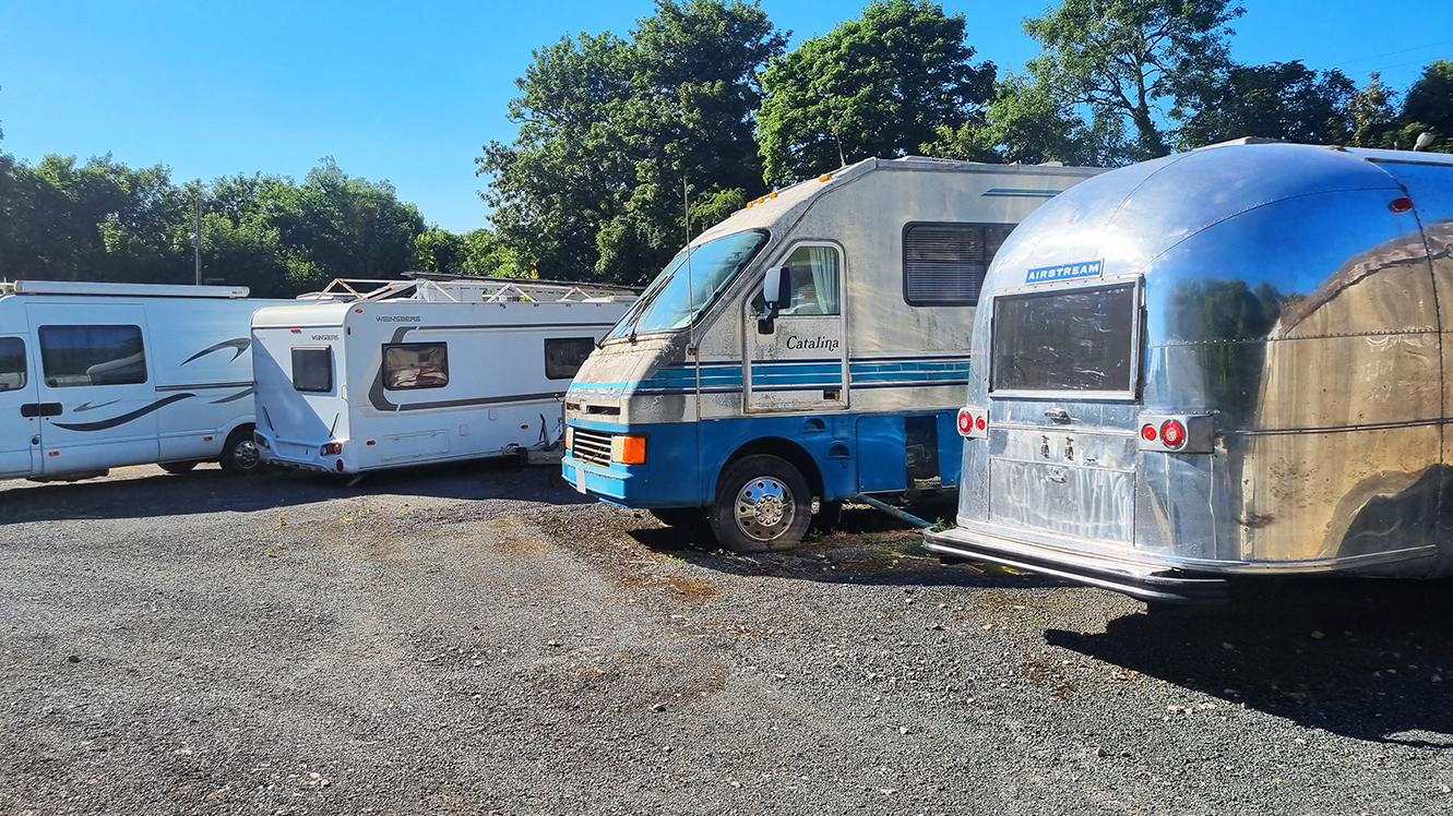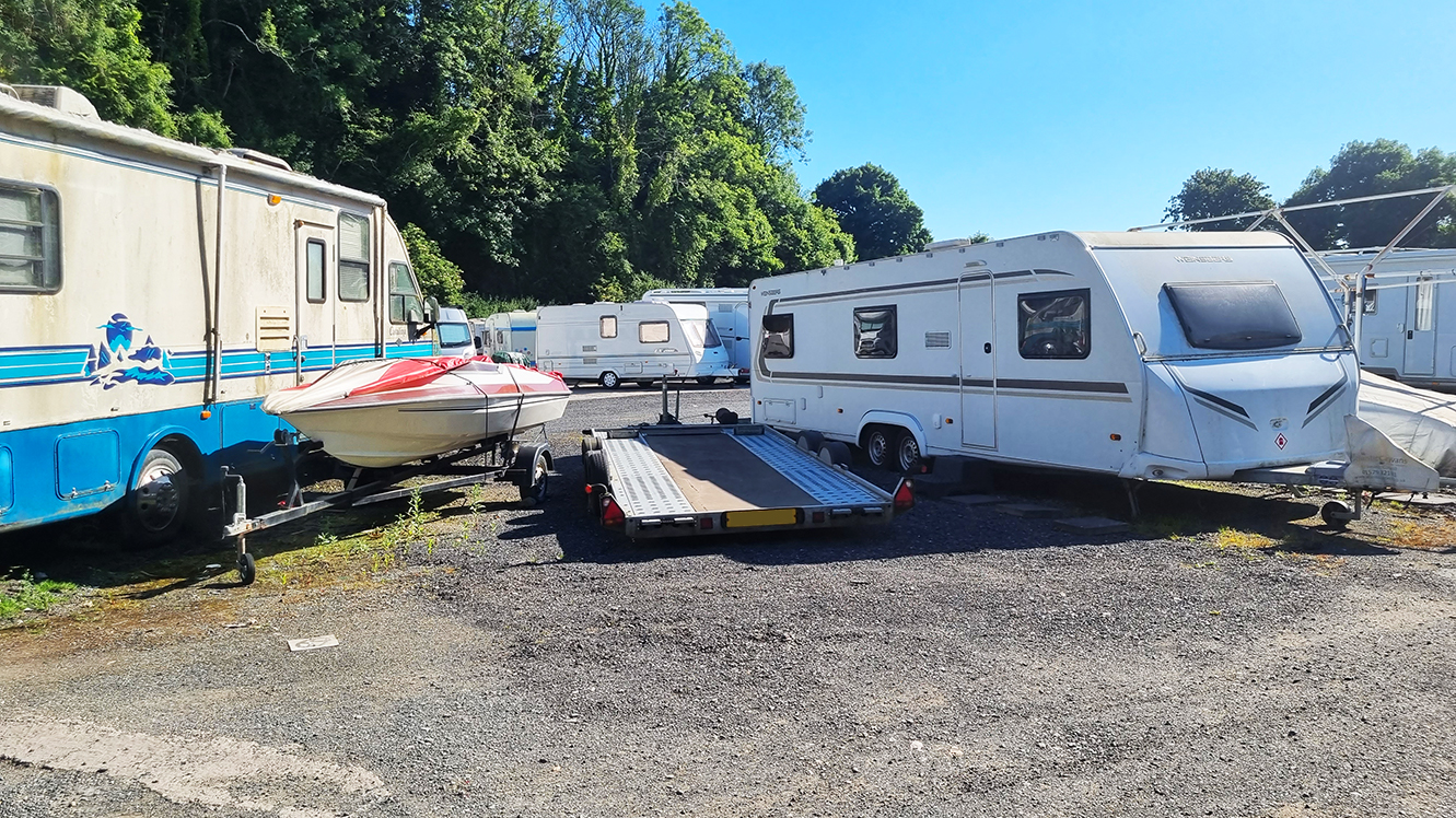 Motorhome, a boat, a trailer, and a caravan. An excellent cross-section of the vehicles we store.
